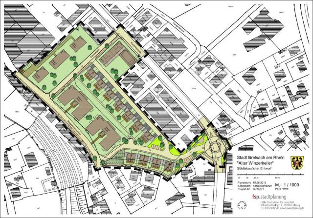 Gerade einmal neun Bürger/Innen hatten sich am Mittwoch, den 28. Juli 2010, auf den Weg zum Breisacher Rathaus gemacht, um sich von Stadtplaner Dr. Bernd Fahle, den Baufachmännern der Stadt Breisach, Stefan Baum und Florian Herth, sowie eines Vertreters des Hauptinvestors „Treu Bau“ Freiburg über die geplante Bebauung für das Areal des „Alten Winzerkellers“ informieren zu lassen. Für die rund 20.000 Quadratmeter große Fläche, die nach dem Abriss eines Großteils der alten Kellerei zwischen Kupfertor- und Muggensturmstraße frei wird, ist ein reines Wohngebiet mit unterschiedlichen Wohnformen geplant.