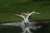 Die Umkircher Singschwäne steigen für ihre Flugrunden immer wieder in den Umkircher Himmel auf, doch sie blieben dem Queen-Auguste-Victoria-Park treu. Schwäne zählen zu den Welt-Meistern der Monogamie; ein Schwanen-Paar bleibt sich lebennslang treu. Dieses Jahr hat sich das Singschwäne-Paar für die Geburt ihrer Jungen Christi Himmelfahrt ausgesucht. An diesem 40. Tag des Osterfestkreises feiern die Christen die Rückkehr Jesu Christi als Sohn Gottes zu seinem Vater in den Himmel. Nach 35 Brut-Tagen erblickten am 17.5.2012 vier junge Singschwäne in Umkirch das Licht der Welt. Wie der Name schon sagt, kann der Singschwan ausdrucksvoll singen. Aus dieser Eigenschaft leitet sich seit der Antike die metaphorische Gleichsetzung des Schwans mit dem Dichter her. Singschwäne sind auch auf der finnischen 1-Euro-Münze abgebildet. Die Singschwäne (Wissenschaftlicher Name Cygnus cygnus) gehören zur Familie der Entenvögel in der Gattung der Schwäne. Es sind Brutvögel der osteuropäischen und sibirischen Taiga. In Umkirchs Queen-Auguste-Victoria-Park wurden vor rund 15 Jahren zwei Pärchen Singschwäne ausgesetzt. Sie brachten inzwischen zahlreiche Jungen zur Welt. Jedes Jahr werden die Jungschwäne (wenige Tage nach ihrer Geburt) schon Opfer von Raubvögeln. Im letzten Jahr hat nur ein Jungschwan überlebt. Dennoch ist das Ensemble des Umkircher "Singschwan-Orchesters" in den letzten Jahren auf insgesamt 12 Mitglieder (Singschwäne) angestiegen. Nachdem Park-Fotograf Achim Keller die Schwäne aufgenommen hatte beobachtete auch Singschäne-Fotograf Werner Trageiser Umkirchs Entenvögel; es gelangen ihnen erstaunliche Schnappschüsse.