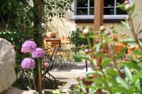 Im Hof des „Zum Küfer“ duften jetzt die Bäumchen von Zitronen, Mandarinen und Oliven und es blüht der weiße Jasmin und der türkisblaue Bleiwurz vom Kap der guten Hoffnung.