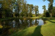 Verwunschene Landschaft mit Blick über das Wasser zum Erdkegel: Queen-Auguste-Victoria-Park (Bild: Regionalia)