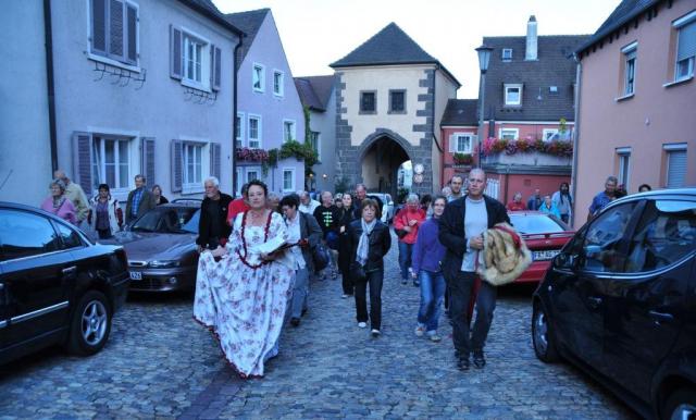 Seit dem 01. September 2010 gibt es in Breisach wieder eine neue Stadtführung. Breisacher/Innen wie Besucher (m/w) haben seit letztem Mittwoch Gelegenheit, von der ehemaligen Mätresse und heimlichen Ehefrau des Sonnenkönigs Louis XIV, Françoise D´Aubigné, verkörpert von der Schauspielerin Sybille Kleinschmitt, eine Menge über die bewegte deutsch- französische Geschichte wie über die weit zurückreichende Vergangenheit Breisachs zu erfahren.