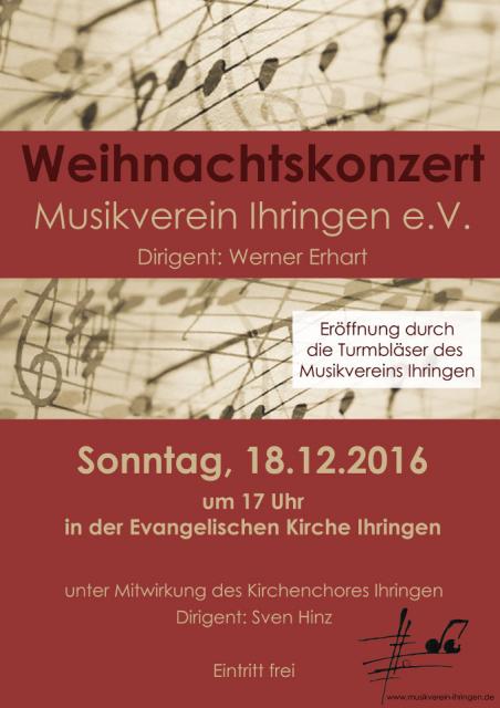 Einladung zum Weihnachtskonzert 2016 des Musikvereins Ihringen