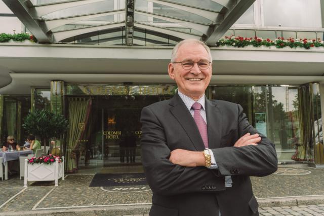Roland Burtsche, der König des privaten Grand-Hotels, vor seinem Colombi.