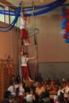 Davon überzeugen, dass Zirkus in fünf Tagen wirklich möglich ist, konnten sich am Freitagnachmittag rund 400 stolze Mamas und Papas, Omas und Opas sowie kleine und große Geschwisterkinder. Schon lange vor Beginn der Vorstellung drängte das Publikum vor dem „Zirkuseingang“, der, wie auch der Schulhof und die Malteserhalle prächtig dekoriert worden war. Die bunte Farbenpracht wurde aber noch übertroffen als die Hauptdarsteller/Innen in ihren knallbunten Kostümen auf die Bühne stürmten.