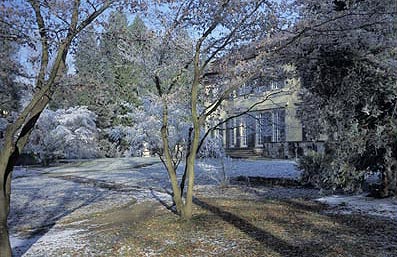 Verträumt und verschneit: Schloss Fulwellpark im Seitenblick