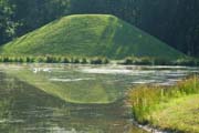 Gartenkunst im Queen-Auguste-Victoria-Park: Der Erdkegel spiegelt sich im Wasser (Bild: Regionalia)