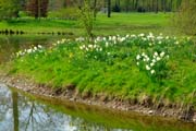 Der Frühling ist da im Queen-Auguste-Victoria-Park: Erdkegel im Spiegel des Wassers (Bild: Regionalia)