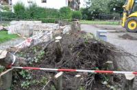 Nein, bis zum Wattenmeer reicht der Blick vom Gutshofplatz noch nicht. Durch die sowohl in der Bevölkerung als auch im Gemeinderat umstrittene Entfernung des Laubengangs aber, lässt sich die von Architekt und Platzplaner Volker Rosenstiel entworfene Sichtachse von Schloss Büningen (Rathaus) bis St. Marien nun zumindest einmal erahnen. Störend wirken bisweilen noch die Kies- und Granitsteinpalettenberge, hinter denen sich das Rathaus augenblicklich duckt sowie die (von Beschlusswegen) bereits zum Abriss freigegebene Gutshofmauer. Diese jedoch genießt aufgrund massiver Bürgerproteste bislang noch Schonfrist, obwohl sie sich genauso wenig in das mehrheitlich befürwortete Platzkonzept des Freiburger Architekten einfügt, wie der jetzt entfernte Laubengang oder die neu auf den Platz oder besser Plan gekommenen Altstadtlampen, die in der Septembersitzung des Umkircher Gemeinderats bemustert werden sollen. Die alten Altstadtlampen auf dem Bauplatz zwischen Rathaus und Kirche machen auf den Betrachter/ die Betrachterin jetzt jedenfalls einen verlorenen, ja fast bemitleidenswerten Eindruck. Bürgermeister Laub hat jedoch zugesichert, dass sie in der Gemeinde andernorts Verwendung finden werden, so zum Beispiel in der Umgebung der sanierten Umkircher Mühle. Dank des Vorschlags eines umsichtigen Umkircher Bürgers, wird zumindest auch das Laubenganggerüst nicht verschrottet. Er wird neu begrünt und wird wieder verwendet, um die hässliche Betonmauer am Ostrand des Gutshofplatzes verdecken. Dass es hin und wieder Sinn macht, auf Eingaben aus der Bevölkerung zu hören, hat sich bei den Umkircher Entscheidungsträgern zumindest ansatzweise herumgesprochen. So wurde beim Kauf des Flügels für den neuen Bürgersaal ein namhafter, in Umkirch wohnhafter emeritierter Musikprofessor hinzugezogen. Und auch was die Baumauswahl für den neu zu gestaltenden Platz betrifft, hat man letztlich auf den Rat eines in Baum- Angelegenheiten ausgewiesenen Experten gehört, der Gleiche nämlich, der sich auch gegen die Verschrottung und für die Wiederverwendung des Laubengangs stark gemacht hatte. Manchmal werden die Anregungen und guten Idee von Bürgern danach auch als die ureigenen mancher Gemeideräte vereinnahmt. Aber auf diese Weise sind zumindest nicht nur die zu vielen Groß-Bäume aus dem Pflanzprogramm genommen, sondern auch die zwischenzeitlich preferierten Spree- oder besser Sumpfeichen als für den Standort ungeeignet sinnbildlich „geknickt“ worden.
