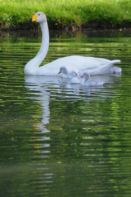 Singschwan-Orchester: Vier junge Singschwäne in Umkirchs Queen-Auguste-Victoria-Park!  6354  18.05.2012