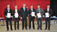 Für eine lebendige Kooperation, eine Stärkung und Förderung des Nachwuchses sowie vor allem eine Hilfestellung beim Überschreiten der schwierigen Schwelle vom Schulabschluss in den Beruf versprachen die Vertreter der neuen Schulpartner Rolf Brendle (VOBA), Boris Gourdial (Bundesagentur für Arbeit), Frank Laurenat (Festspiel Breisach) sowie Uwe Männel von Rhodia Acetow.