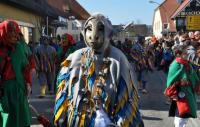 Den Auftakt bildete das Gardebalett des UNC, gefolgt von der Umkircher Guggenmusik „Schräg & Lutt“, die ihrem Namen auch beim Rosenmontagszug alle Ehre machte. Bonbons oder eine wohltuende Konfetti- Massage gab es von den UNC- Traditionsfiguren Hexen und Esel, die besonders durch ihre schön- schrägen Holzmasken bestechen. Direkt vom Heuele Wald waren die „Heuele Waldmärre“ in die Hauptstraße gekommen. Ihre Kostüme ermöglichen einen interessanten Einblick in die Flora der berühmten Umkircher Wälder. Auf Safari begaben sich anläßlich der Fasnacht die Mitglieder des VfR Umkirch. Um aber nicht gänzlich auf die Segnungen der Zivilisation verzichten zu müssen, hatten sie eine Art Wohnwagen im Schlepptau. Ganz schön gruslig und etwas ungekämmt kamen die „Hugenwaldteufel“ aus Waldkrich daher. Vermutlich schauen sie deshalb so grimmig, weil hinter ihrem beliebten Hugenwaldtunnel immer nervige Geschwindigkeitskontrollen stattfinden. Mindestens ebenso ruppig sind die „Bosensteiner Höllenknechte“ aus Ottenhöfen drauf, obwol hier über Geschwindigkeitsmessungen nichts bekannt ist.