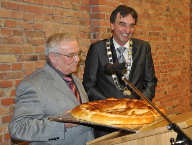 Scheut den großen Auftritt mit Amtskette: Bürgermeister Walter Laub ( hier mit Pfr. Kurt Hilberer) (Bild: J. W. Steckmeister)