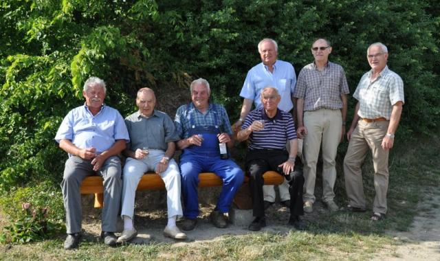 Bankbesetzung: Schwarzwaldvereinsvorstand Konrad Herzig (links) und Ortsvorsteher Walther Ziegler (3.v.r. stehend) sind nicht allein (Bild: J. W. Steckmeister)