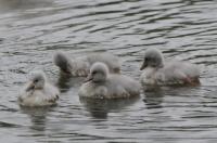 Schwanengeburt: Vier junge Singschwäne in Umkirchs Queen-Auguste-Victoria-Park (Bild: Achim Keller)