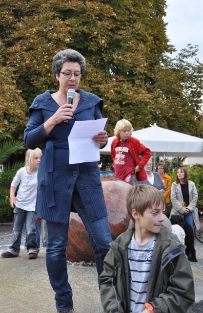 Mitorganisatorin Dr. Petra Breitenfeldt begrüßt die Demonstranten/Innen