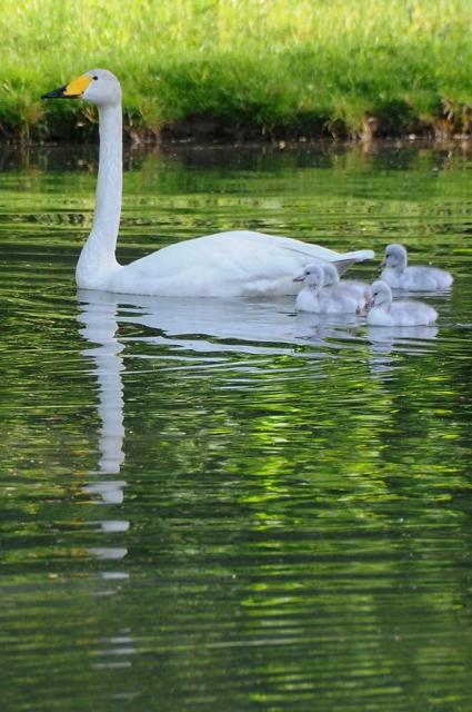 Singschwan-Orchester: Vier junge Singschwäne in Umkirchs Queen-Auguste-Victoria-Park!  6354  18.05.2012