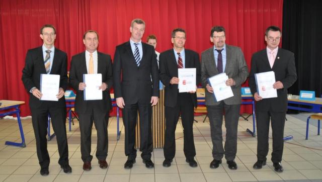 Partner für die Zukunft: Arbeitsagentur, Volksbank, Bürgermeister, Rektor, Rhodia und Festspiele Breisach (v.l.n.r.)