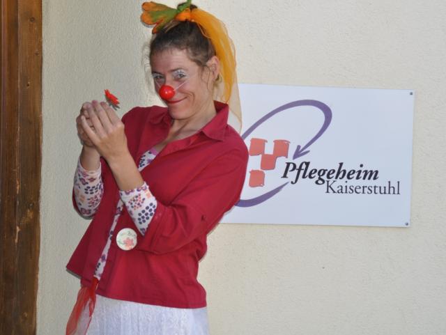 Am 21. September 2010 war Welt- Alzheimertag. Morbus Alzheimer ist die Bekannteste unter den so genannten Demenzerkrankungen, die vorwiegend bei älteren Menschen zum fortschreitenden Verlust des Gedächtnisses führt. REGIONALIA- Breisacher Nachrichten besuchte zusammen mit der Sozialpädagogin Margrita R. Wahrer alias „Frau Blume“ das Breisacher Pflegeheim „Kaiserstuhl“. Hier leben rund 50 vorwiegend demenzkranke Menschen. Die Clownin mit der roten Nase schafft es mit ihrer unbedarften, vorbehaltlosen Art, zu den Heiminsassen/Innen einen ganz besonderen Kontakt herzustellen.