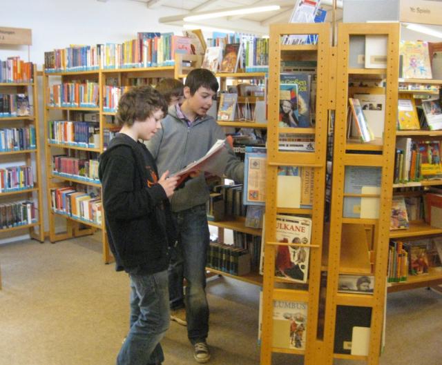 Frau Winter hatte eine Rallye durch die Bücherei vorbereitet. Nachdem alle Fragen gelöst waren, durften die Schüler sich verschiedene Bücher aussuchen und in Ruhe darin schmökern. Am Ende gab es dann sogar auch die Möglichkeit, ein Buch, Video, Brettspiel oder eine DVD auszuleihen. Allen hat der Besuch in der Bibliothek Breisach sehr gefallen und so mancher konnte mit einem neuen Buch oder PC-Spiel in der Tasche nach Hause gehen.