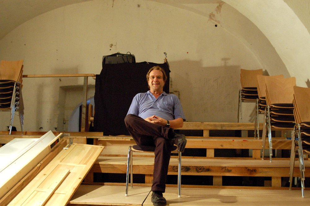 Eberhard Busch in seinem Kellertheater. Gerade wird umgebaut.
