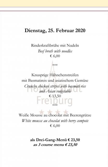 Dienstag: 3-Gang Tagesmenü von Spitzenkoch Matthias Dahlinger für EURO 23,50 im Hotel Stadt Freiburg
