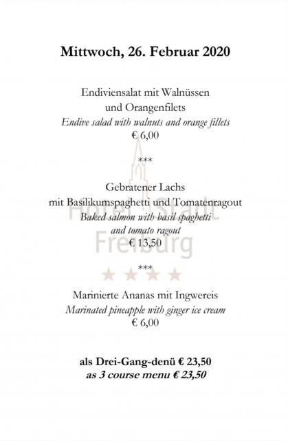 Mittwoch: 3-Gang-Tagesmenü von Spitzenkoch Matthias Dahlinger für EURO 23,50 im Hotel Stadt Freiburg
