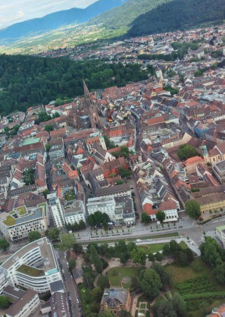 Freiburgs gastronomische Institution mit Weltklasse: Das Colombi-Hotel und der Colombi-Park im Luftbild