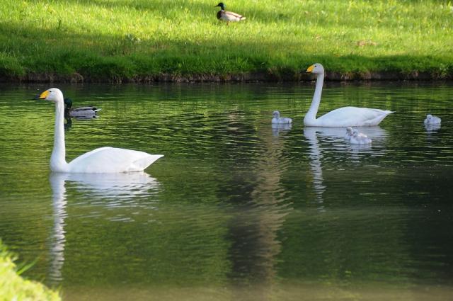Singschwan-Orchester: Vier junge Singschwäne in Umkirchs Queen-Auguste-Victoria-Park!  6354  18.05.2012