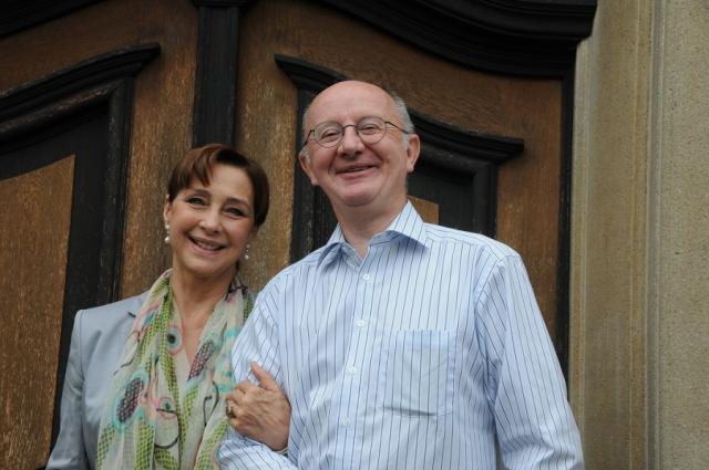 Charme-Offensive: Schauspielerin Christine Kaufmann verblüfft Parkschöpfer Werner Semmler während der Drehpausen in Umkirch.