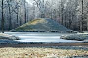 Der zugefrorene See im Queen-Auguste-Victoria-Park mit dem Erdkegel im Hintergrund (Bild: Regionalia)