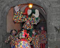 Auf dem Sammelplatz vor dem Narrenherrschaftssitz im Breisacher Rathaus hatten sich neben buntgefleckten Gauklern und immergrünen Zunfträten allerhand weißgewandete Untertanen versammelt, um zu den Klängen des Breisacher Narrenmarsches auf verschlungenen Pfaden zum Marktplatz zu wandeln. Am Gutgesellentor wurden die Umzugsteilnehmer musikalisch von den „Bajakl Schnäpfen“ in Empfang genommen. Mit neuer musikalischer Energie ging es dann bis auf den Marktplatz, wo auf den bereits für die Gauklertage errichteten Tribünen die Musiker/Innen der Stadtmusik, der „Schädelfätzer“ und der „Bajakl Schnäpfen“ sich selbst und den Umstehenden kräftig einheizten. Anschließend verlief sich der Umzug in ungeordneter Formation in den Breisacher Gaststätten, um, trotz der Schlafanzüge und Nachtmützen, dem Bett möglichst lange fern zu bleiben.