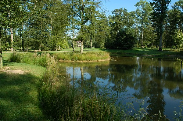Schönheit und Natur im Queen-Auguste-Victoria-Park: Die Bäume spiegeln sich, das Schilf gibt den Fröschen Schutz