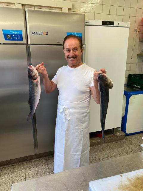 Frische Fische gibt es täglich im Restaurant San Marino in Freiburg: Francesco Caridi präsidentiert sie stolz.
