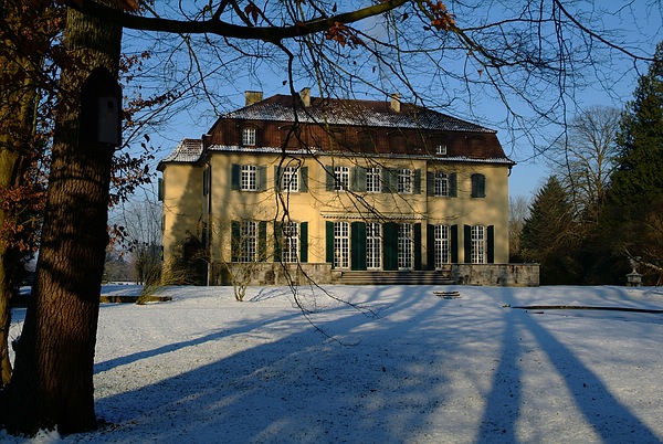 Baumspiegelungen im Schnee des Fulwellparks