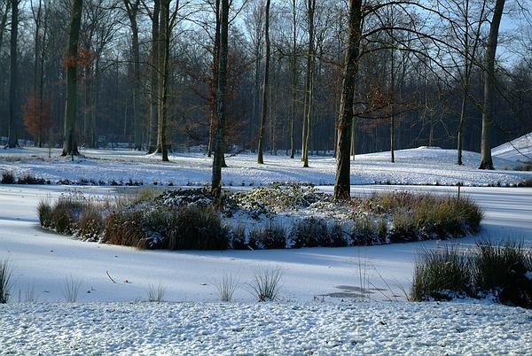 In Eis gelegt: die Insel im Fulwellpark