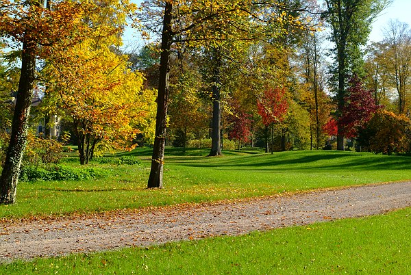 Weg im Queen-Auguste-Victoria-Park im sanften Grün