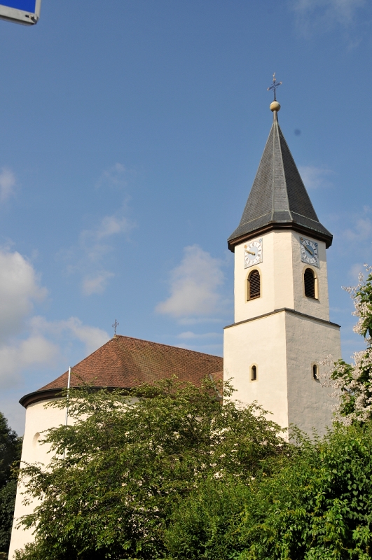 Das Wahrzeichen von Umkirch: Der Kirchturm von Mariä Himmelfahrt