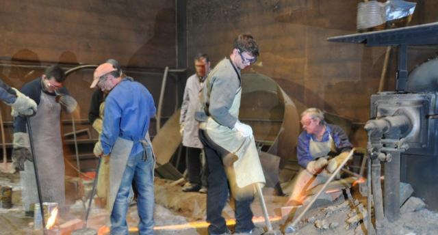 Konzentration beim Glockenguss: Die Mannschaft der Gießerei A. Bachert