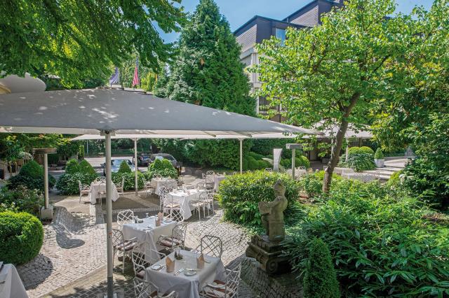 Der Garten zeigt sein Herz: Der Europäische Hof in Heidelberg.