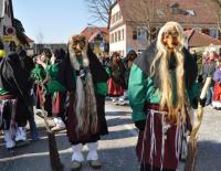 Den Auftakt bildete das Gardebalett des UNC, gefolgt von der Umkircher Guggenmusik „Schräg & Lutt“, die ihrem Namen auch beim Rosenmontagszug alle Ehre machte. Bonbons oder eine wohltuende Konfetti- Massage gab es von den UNC- Traditionsfiguren Hexen und Esel, die besonders durch ihre schön- schrägen Holzmasken bestechen. Direkt vom Heuele Wald waren die „Heuele Waldmärre“ in die Hauptstraße gekommen. Ihre Kostüme ermöglichen einen interessanten Einblick in die Flora der berühmten Umkircher Wälder. Auf Safari begaben sich anläßlich der Fasnacht die Mitglieder des VfR Umkirch. Um aber nicht gänzlich auf die Segnungen der Zivilisation verzichten zu müssen, hatten sie eine Art Wohnwagen im Schlepptau. Ganz schön gruslig und etwas ungekämmt kamen die „Hugenwaldteufel“ aus Waldkrich daher. Vermutlich schauen sie deshalb so grimmig, weil hinter ihrem beliebten Hugenwaldtunnel immer nervige Geschwindigkeitskontrollen stattfinden. Mindestens ebenso ruppig sind die „Bosensteiner Höllenknechte“ aus Ottenhöfen drauf, obwol hier über Geschwindigkeitsmessungen nichts bekannt ist.