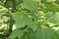 Liriodendron tulipifera „Aureomarginatum“ mit einem breiten gelben Blattrand im Queen-Auguste-Victoria-Park blühen jetzt die Tulpenbäume (Bild: Achim Keller)