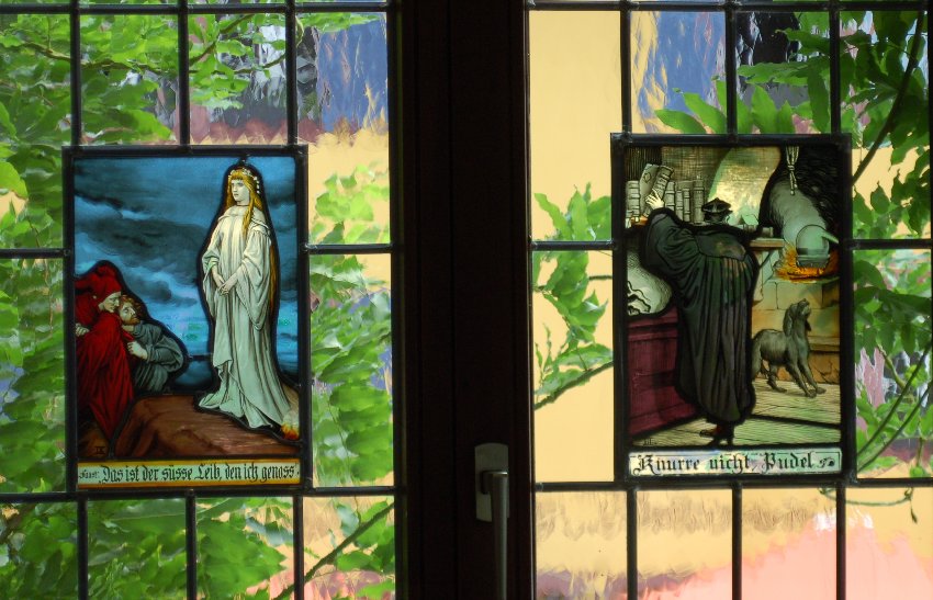 An die Legenden um Faust erinnern die Fensterbilder.