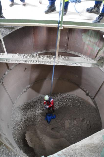 Verletzter Dummy im Silo mit seinem Retter