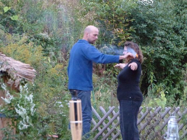 Jurte-Weihung: Eröffnungsrituals in Herbolzheim - mit Weihrauch für die Jurte-Besucher.