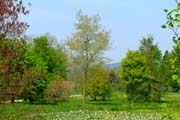 Queen-Auguste-Victoria-Park: Die Schlosswiese blüht vor der Kulisse der jungen Bäume (Bild: Regionalia)