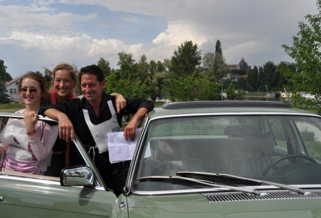 Ein wenig entstand der Eindruck, dass nicht einmal die beteiligten Prominenten wussten, was sie da wozu eigentlich machten, als die Oldtimer- Rallye, die anlässlich des 50. Geburtstags der „Grünen Straße“ von Schluchsee über die elsässische Weinstraße zum Europa- Park nach Rust unterwegs war, einen Zwischenstopp auf der Rheininsel einlegte. Hier galt es für die Stars aus Sport, Film und Fernsehen ein Quiz zu überstehen, bevor die Fahrt nach Colmar fortgesetzt werden durfte. In den 25 Fahrzeugen unterschiedlichster Baujahre waren unter anderem die Schauspieler Max Tidof und Katerina Jakob sowie Skispringer- Ass Sven Hannawald unterwegs.