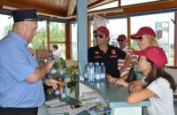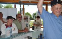 Passend zur Ländergrenze hatte sich im Infopoint hinter der Rheinbrücke ein Zöllner postiert, der den Rallye- Teilnehmern/Innen die Weiterfahrt durch Frankreich nur gestattete, wenn einige kleine Aufgaben erfolgreich absolviert werden konnten. Hierzu zählten das Singen eines französischen Liedes - Chartbreaker auf der Promi- Hitliste waren „Sur le Pont D´Avignon“ und die Marseillaise - und die Beantwortung kniffeliger Fragen wie: „Wo sind wir hier eigentlich?“