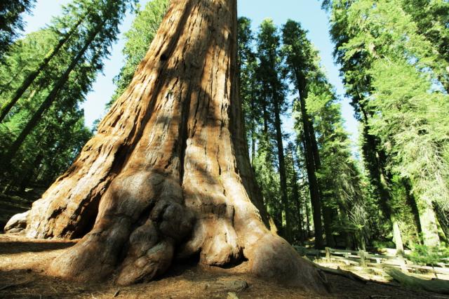 Der Riesenmammutbaum ist ein immergrüner Baum. Er kann 95 m hoch werden und einen Stammdurchmesser von über 12 m an der Basis erreichen. Zeriebene Triebe entfachen einen Anis-Duft. Die Heimat des Mammutbaumes liegt an den Westhängen von Kaliforniens Sierra Nevada. Er wächst dort in Höhen von 1300 bis bis 2500 Meter. Funde von Fossilien weisen darauf hin, dass diese Baumart bereits vor 15 Millionen Jahren im Westen der heutigen Vereinigten Staaten von Amerika heimisch war. Der größte Riesenmammutbaum, den man auf den Namen „General Sherman“ taufte, steht im „Sequoia-Nationalpark“ in der Sierra Nevada, ist 84 m hoch und besitzt ein Volumen von etwa 1480 m³. Damit zählt er zu den größten Lebewesen der Welt. Der „General Grant Tree“ ist mit über 81 Metern der zweitgrößte lebende Baum der Erde. Dieser Riesen-Mammutbaum ist etwa 1500 bis 1900 Jahre alt und steht im Grant Grove des „Kings Canyon National Park“ von Kalifornien. Der Riesen-Mammutbaum ist einhäusig. Die männlichen Blüten befinden sich am Ende kurzer Triebe. Die Zapfen stehen einzeln und an langem Stiel und werden vom Wind bestäubt. Seine Samen sind nach zwei Jahren ausgereift. Riesenmammutbäume sind eine vom Aussterben bedrohte Art. Die derzeitigen wilden Bestände stehen unter Natur- und Artenschutz; sie werden nicht der Holzindustrie zugeführt.  Ein besonders eindrucksvoller Bestand an Mammutbäumen befindet sich in Weinheim an der Bergstraße. Unser Foto zeigt ein anderes Exemplar eines alten Mamutbaumes, der  in einem anderen Park überleben durfte und noch viele Menschenleben überdauern wird.