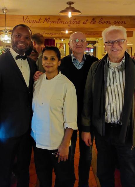 Chef cuisinière et maître d'hôtel avec le critique gastronomique Werner Semmler : restaurant « La Mère Catherine », situé depuis 1793 place du Tertre, au cœur de Montmartre