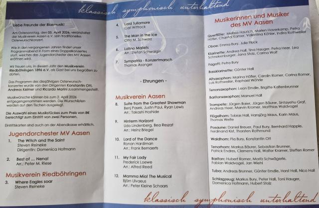Musik lädt nach "Schön-Aasen" ein: Musikverein Aasen gibt am 5. April 2026 sein traditionelles Osterkonzert in der Bürgerhalle.  18729  13.03.2026